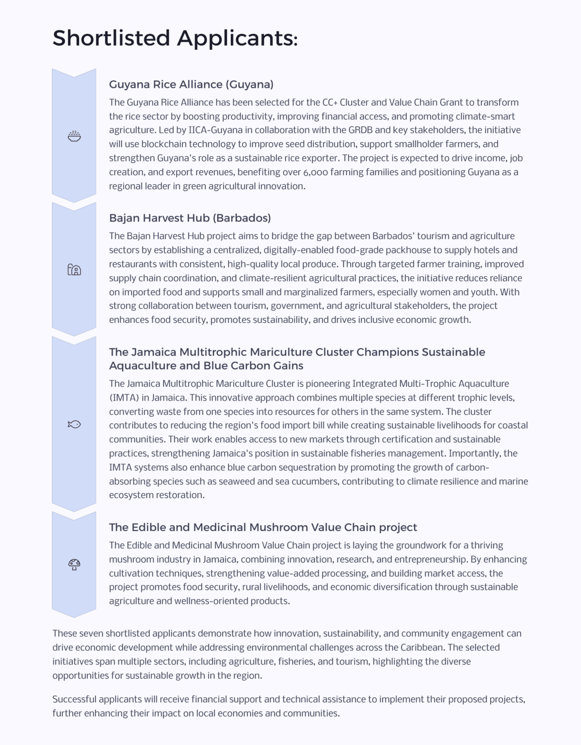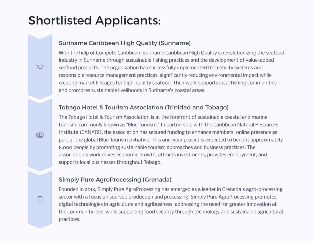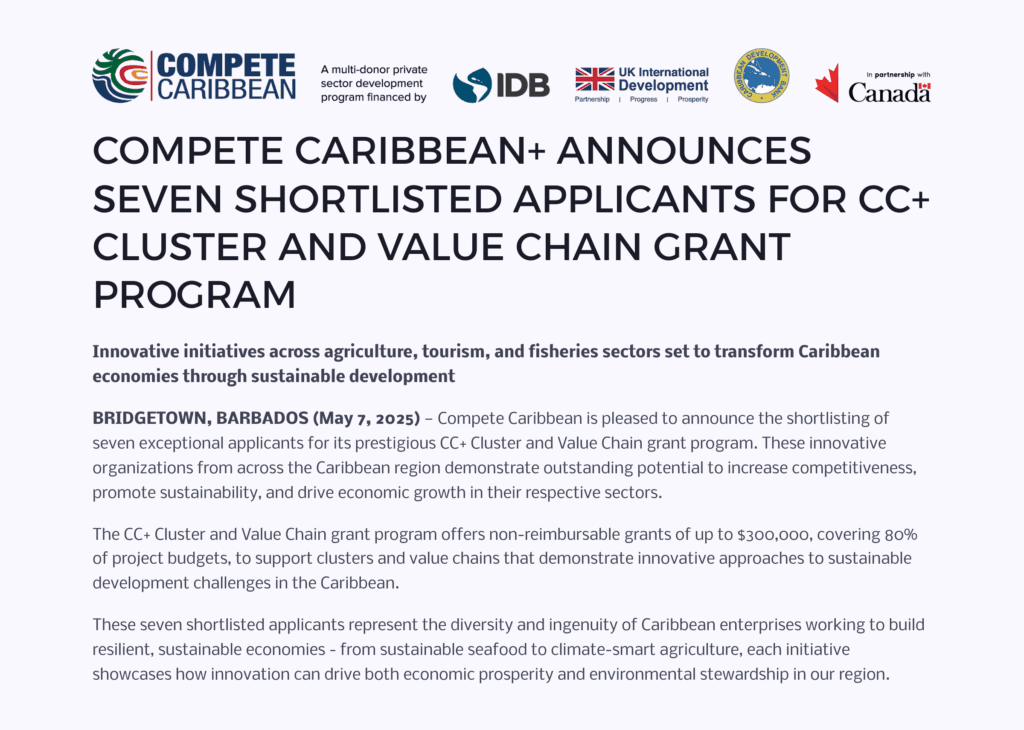 COMPETE CARIBBEAN+ ANNOUNCES SEVEN SHORTLISTED APPLICANTS FOR CC+ CLUSTER AND VALUE CHAIN GRANT PROGRAM