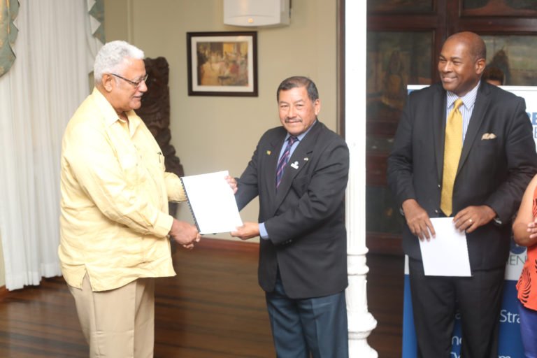 The handing over of the documents to Minister of Indigenous Peoples’ Affairs Sydney Allicock yesterday at the Cara Lodge marked the culmination of the first phase of the Catch-and-release Arapaima Sport Fishing Project, which has been supported by private sector investment support programme Compete Caribbean.