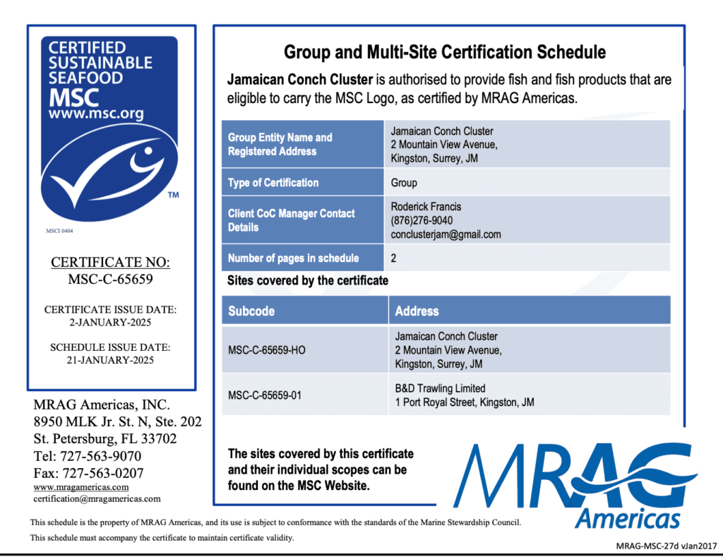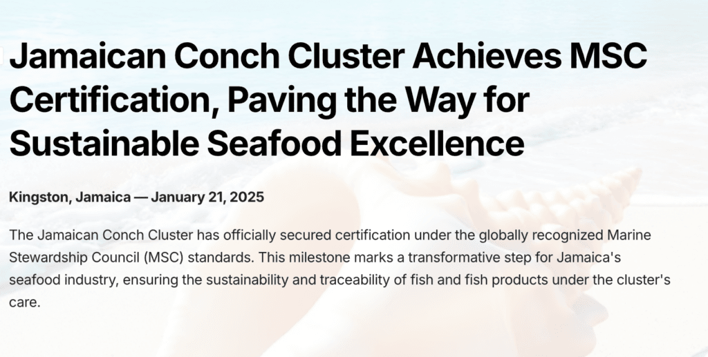 Jamaican Conch Cluster Achieves MSC Certification, Paving the Way for Sustainable Seafood Excellence